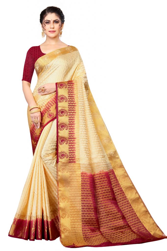 CREAM KANJIVARAM SILK SAREE WITH JUMBO MANGO BORDER KANCHIPURAM SILK SAREE